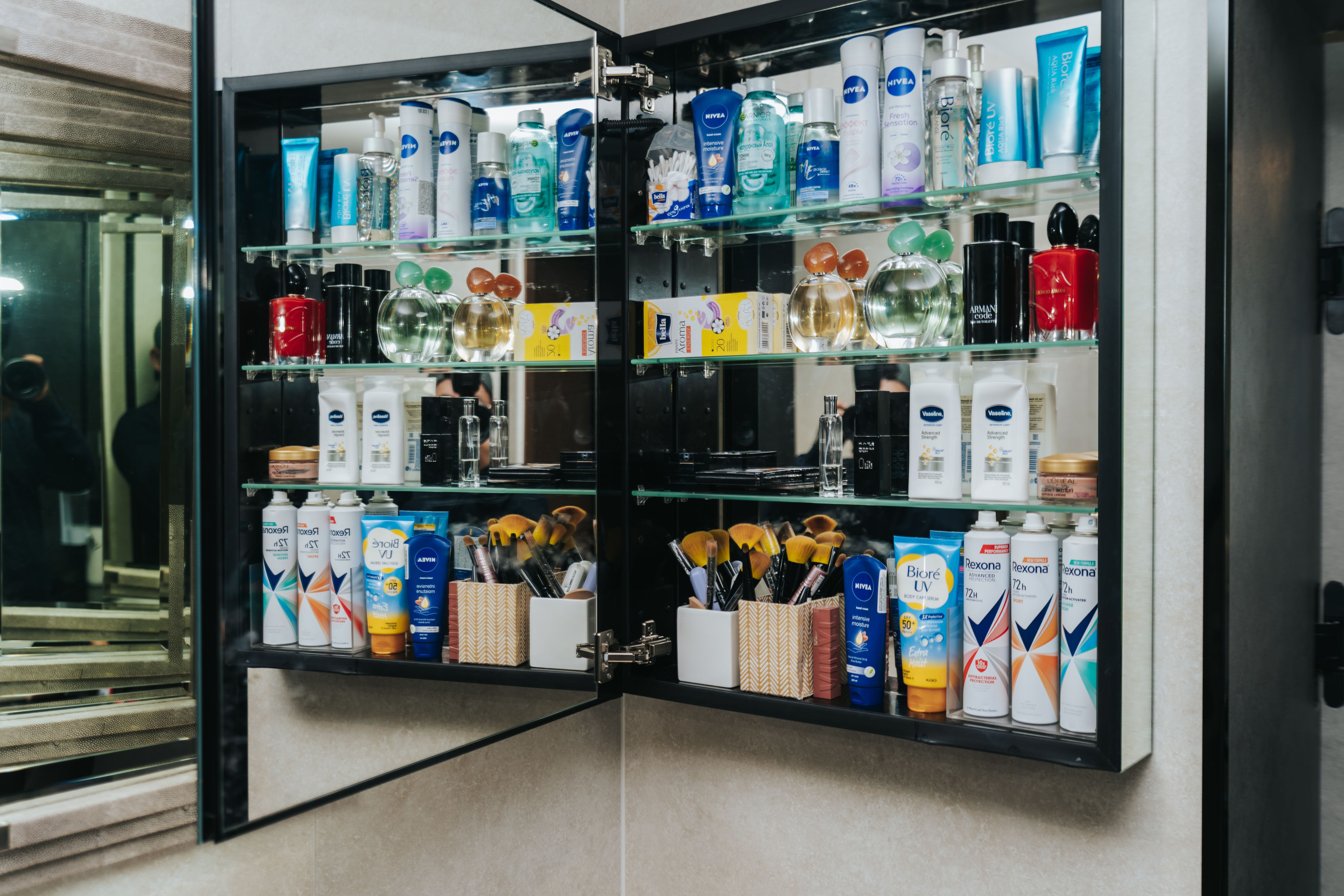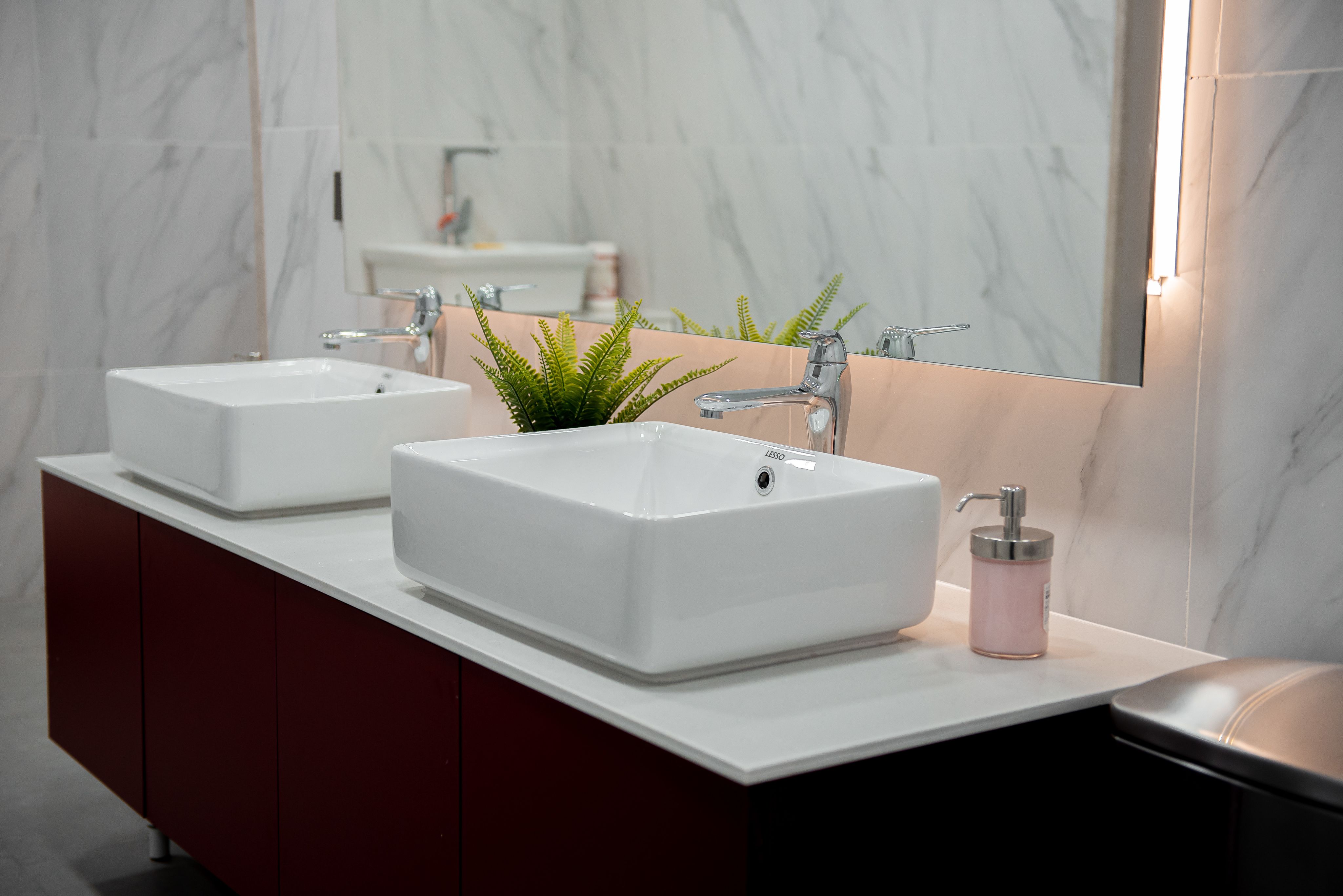 Төв оффист зочлох хүмүүсийн хамгийн түрүүнд анзаарч бүр гайхширдаг хэсэг нь ариун цэврийн өрөө. Энд дэлхийн алдарт брэндүүдийн (Chanel, Dior гэх мэт) үнэртэй ус, нүүр будаг, арьс арчилгааны бүтээгдэхүүнүүд, үсний индүү, сэнс гээд бүх хэрэгцээ бий.